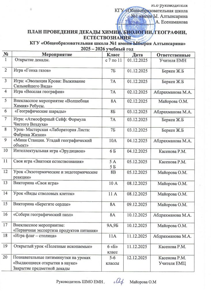 2025-2026 оқу жылына арналған химия, биология және география пәндерінің онжылдық жоспары